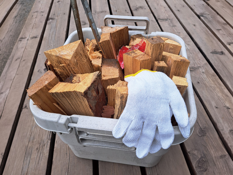 直火は禁止です。バケットは各棟にございます。薪は購入いただくか、ご持参いただければ自由にご利用いただけます。